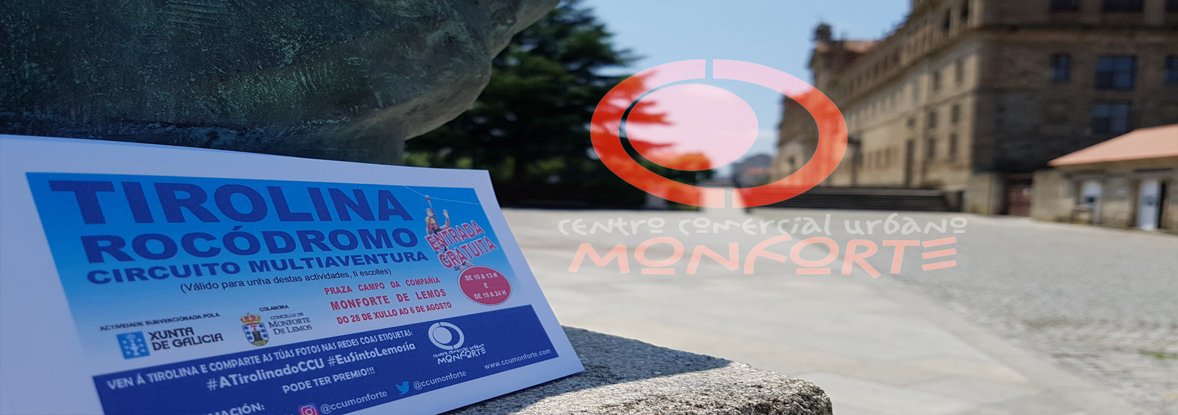 Es un adicto/a as emocións fortes? Gustaríache saber que sente o teu corpo suspendido a varios metros de altura? Pois compróbao ti mesmo na tirolina que instalará o Centro Comercial Urbano de Monforte (CCU) na Praza Campo da Compañía. Ademais, tamén poderás gozar dun rocódromo e dun circuíto multiaventura.