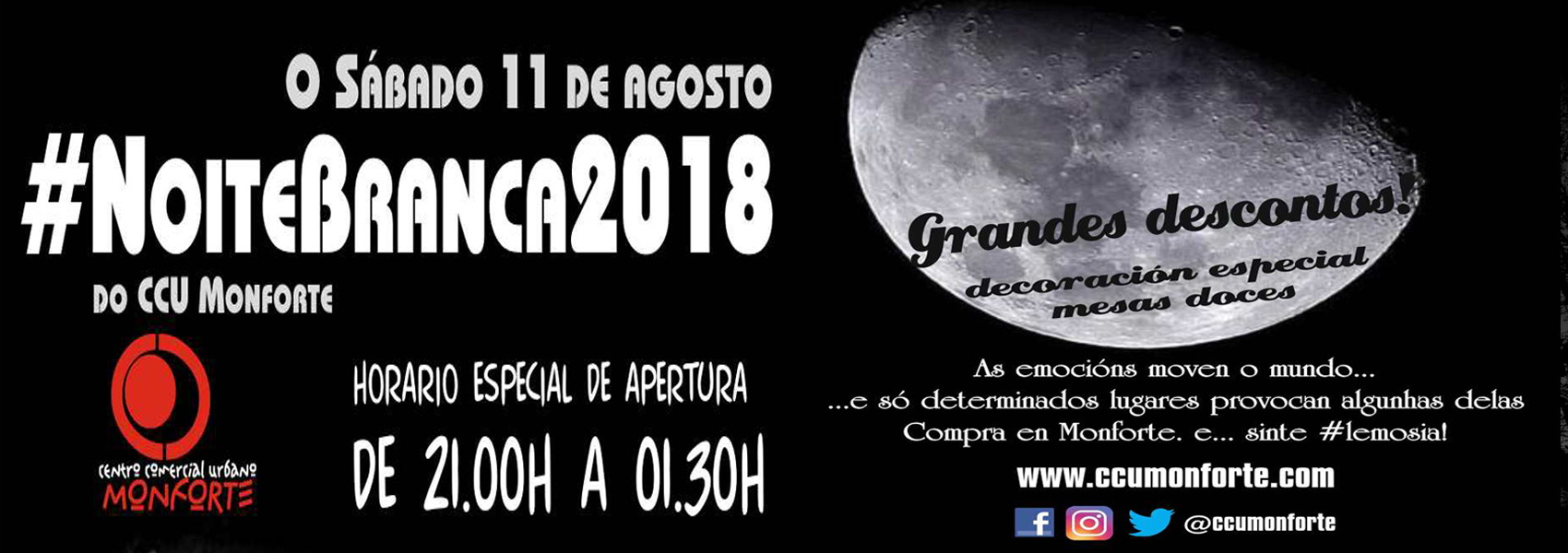 Por segunda ocasión este verán, os comercios de Monforte vestirán as súas mellores galas para acoller aos numerosos turistas e veciños que, aproveitando o inicio das festas nesta ocasión, sairán ás rúas de Monforte para gozar dunha noite moi especial na nosa cidade.