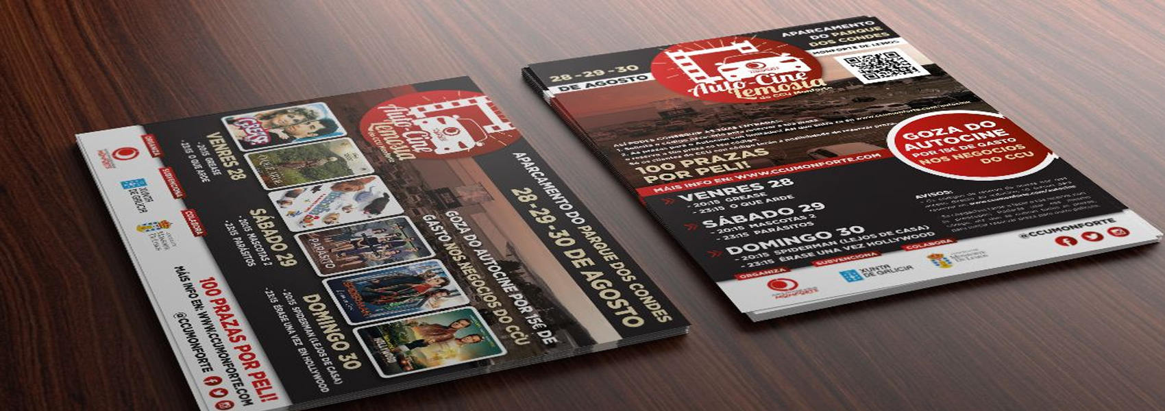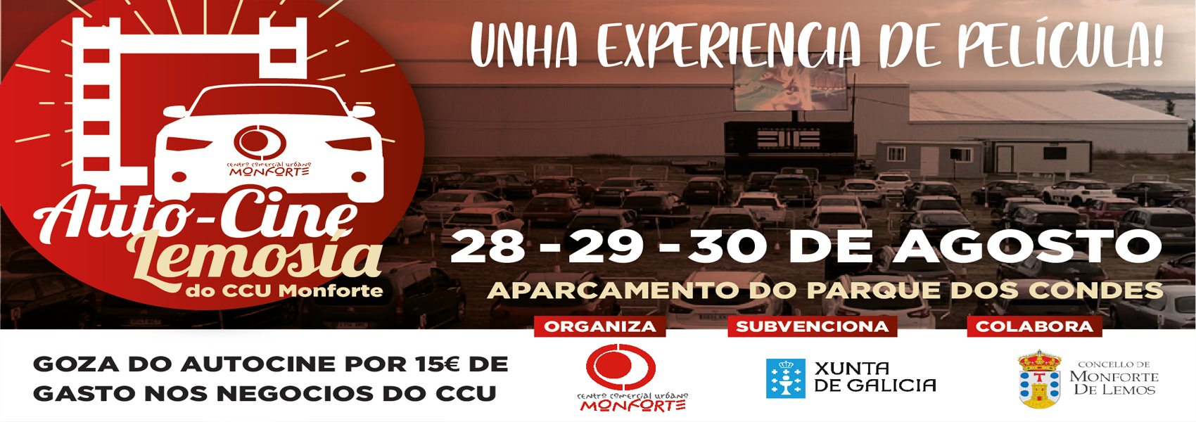 Ata fin de existencias, os clientes que fagan un gasto mínimo de 15€ nalgún dos establecementos asociados ao CCU poderán vivir a experiencia dun Autocine, por primeira vez en Monforte.