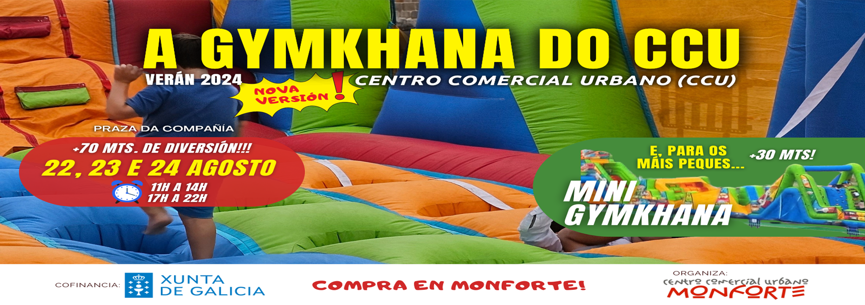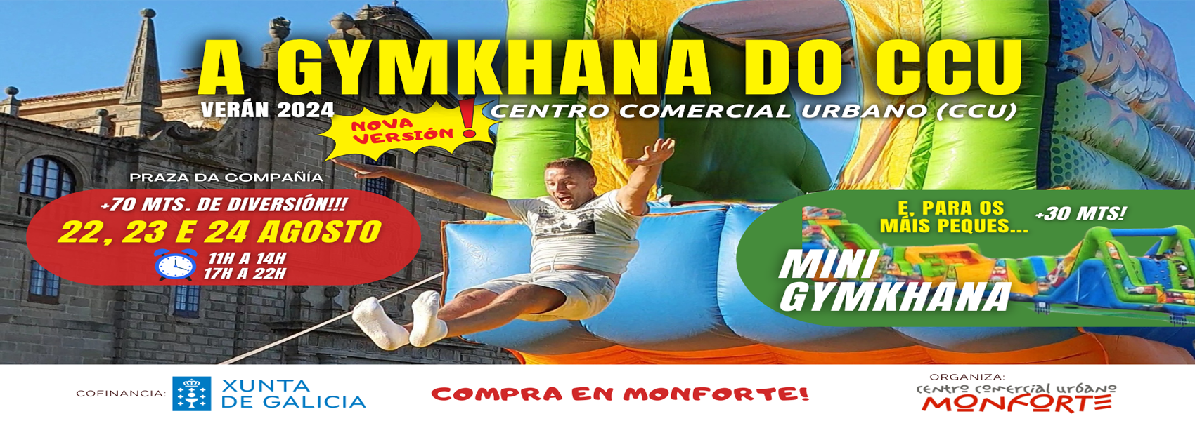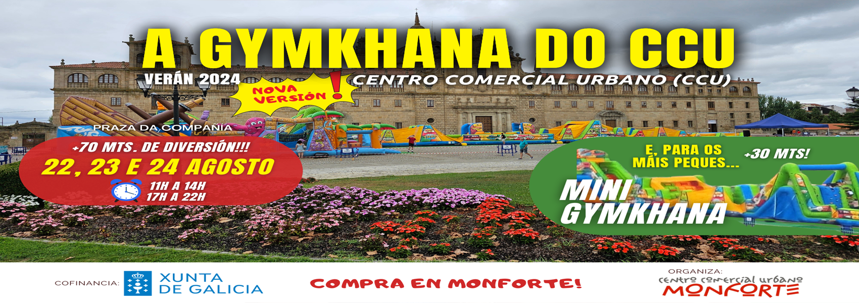 Máis de 100 metros de gymkhanas con novos obstáculos para vivir unha experiencia aínda máis espectacular que a de anos pasados. Que non cho conten, ven a vivilo en primeira persoa co Centro Comercial Urbano (CCU) de Monforte de Lemos, do 22 ao 24 de agosto, na Praza da Compañía