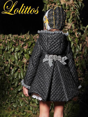 Abrigo Abeja Maya LolittosAbrigo en color negro y gris con topitos plateados y muchos detalles.Tejidos de la mejor calidad para nuestras niñas pequeñas.